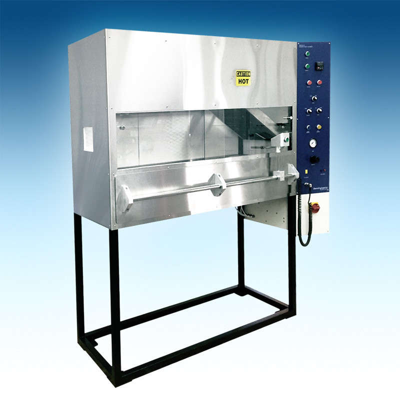 AC 25.856-1 Zbadacz rozprzestrzeniania się płomienia o izolacji termicznej lub akustycznej, przez FAR część 25 dodatek F część VI, is designed to evaluate the flammability and flame propagation characteristics of thermal or acoustic insulation material used in an aircraft cabin when exposed to an electric radiant heat source and a defined flame source.